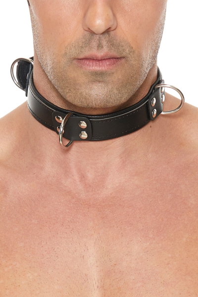 La marque Ouch!, spécialiste des jeux BDSM, propose ce collier de soumission de grande qualité en cuir reconstitué noir, équipé de trois anneaux en D en acier inoxydable auxquels vous pourrez fixer une laisse, des cordes, des chaines ou encore des menottes.